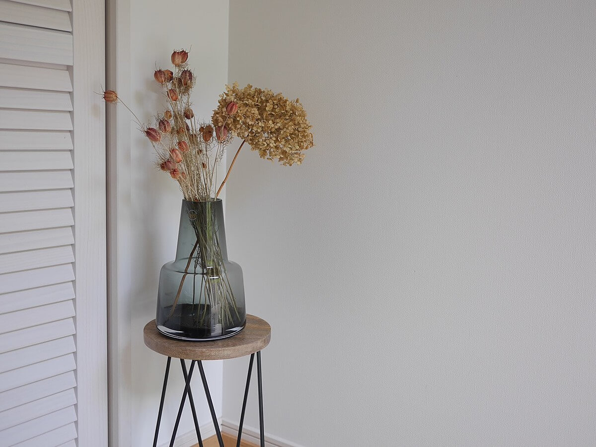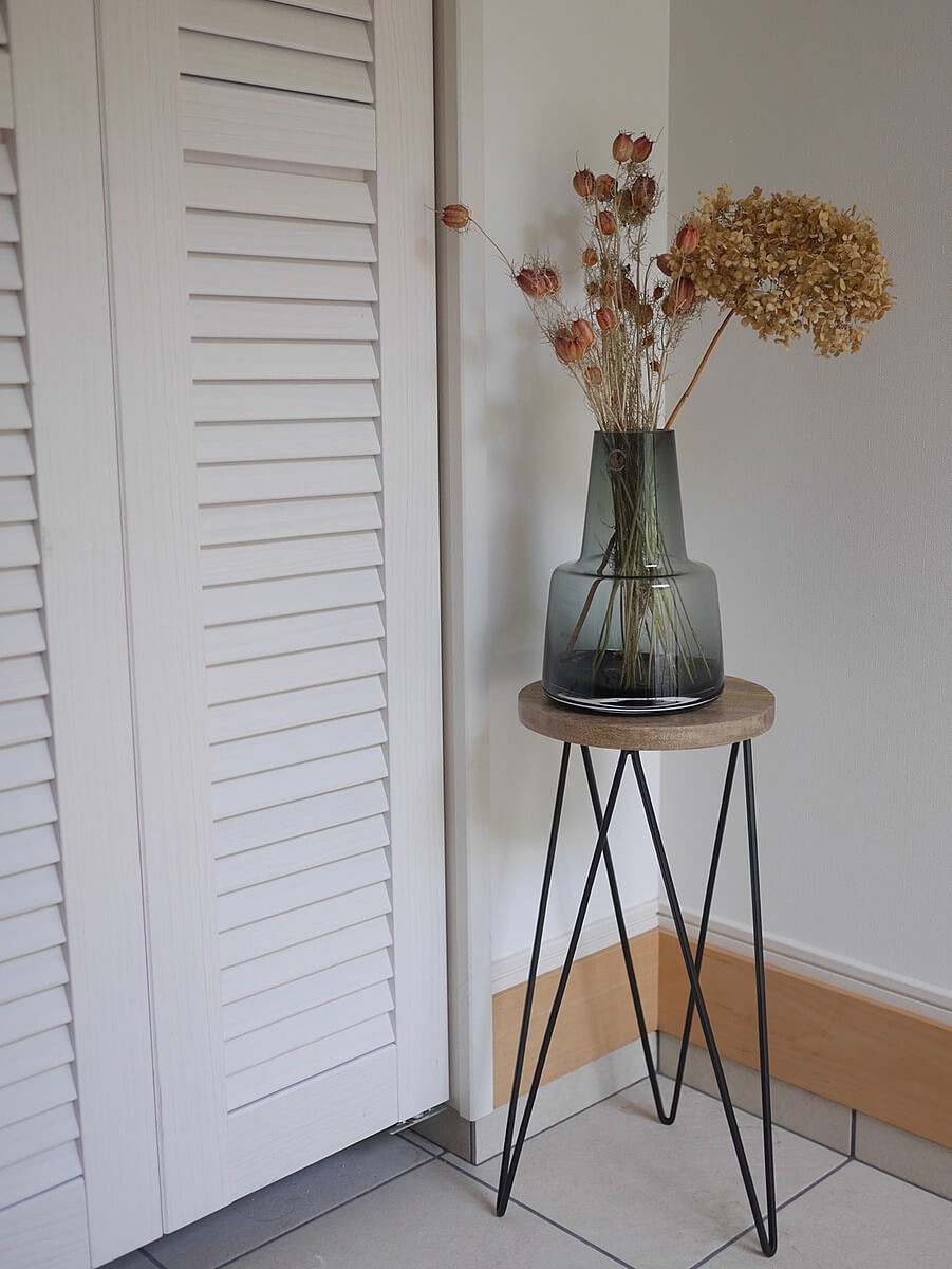 日当たりが少なめの玄関は、ドライフラワーとの相性も◎。強い日差しが入らなければ傷みにくいので、ドライフラワーを置くのもオススメです。