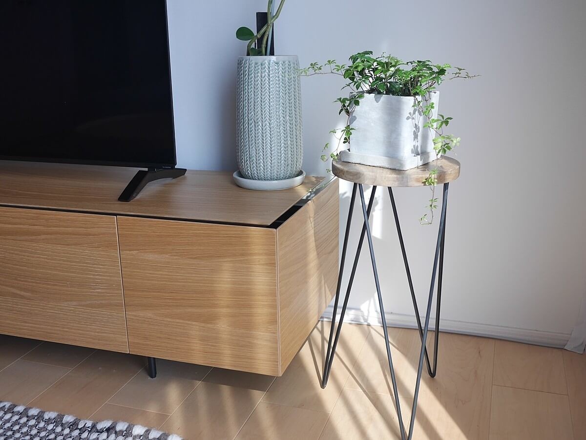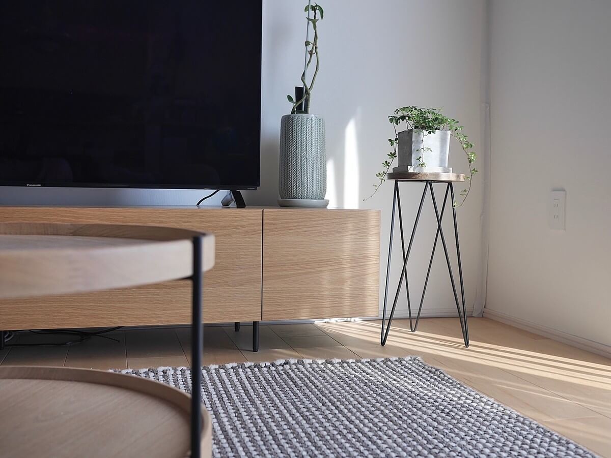 アイアンの足がアクセントになるので、リビングインテリアの一部として雰囲気が引き締まってみえるようになりました。