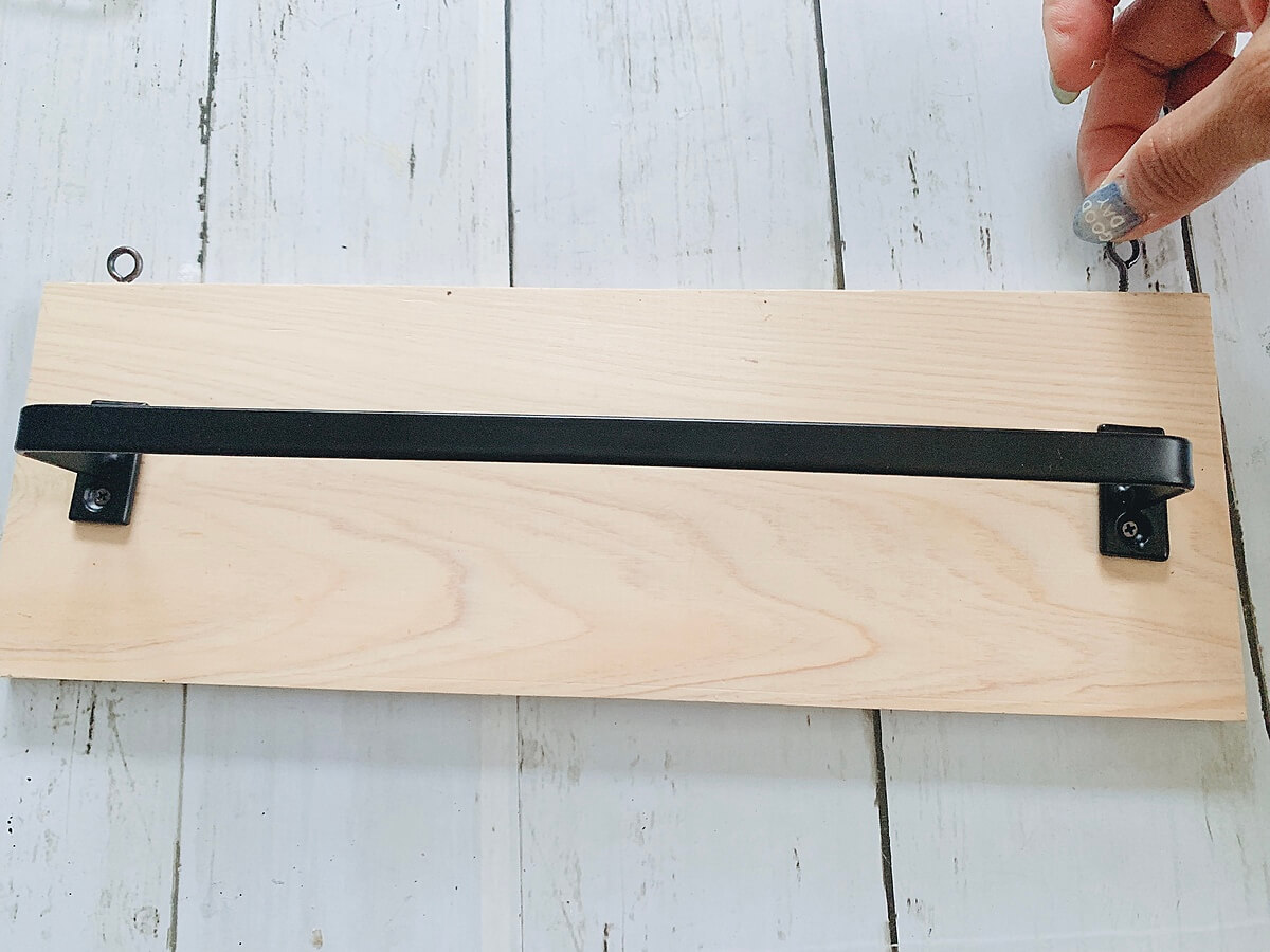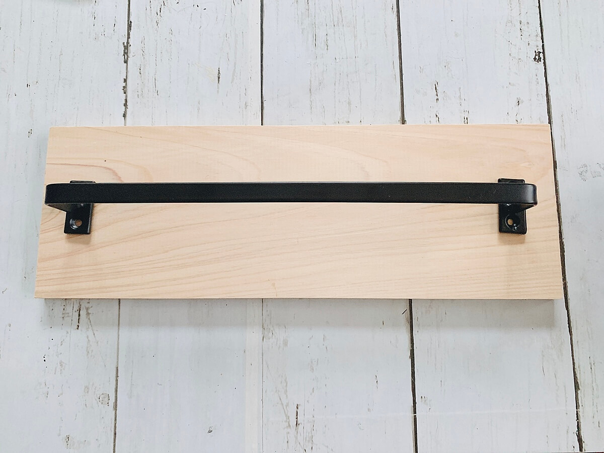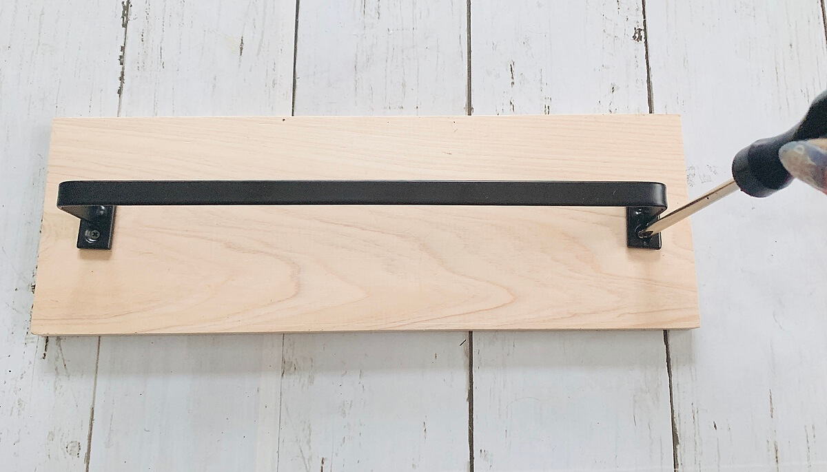 場所を決めたら木ネジ4つでバーをひのき板に固定します。