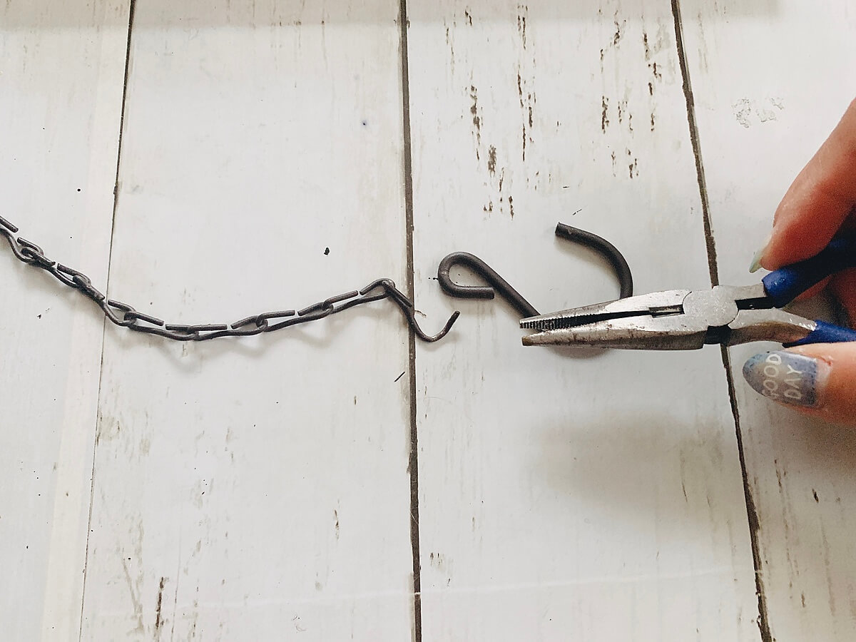 チェーンの両端のフックをペンチで取り外します。