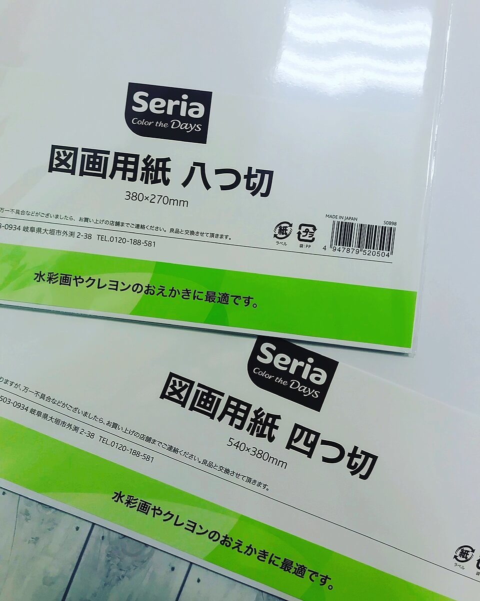 自由研究や、絵を描くのに画用紙の八つ切、四つ切もセリアにちゃんと揃っていますよ!