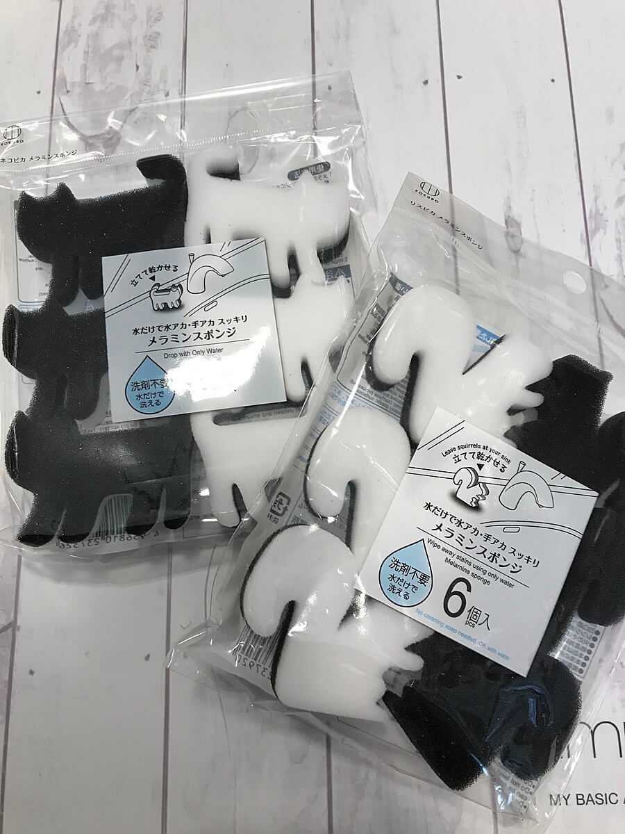 こちらの可愛いメラミンスポンジ。6個入りでもちろん100円(税別)です。