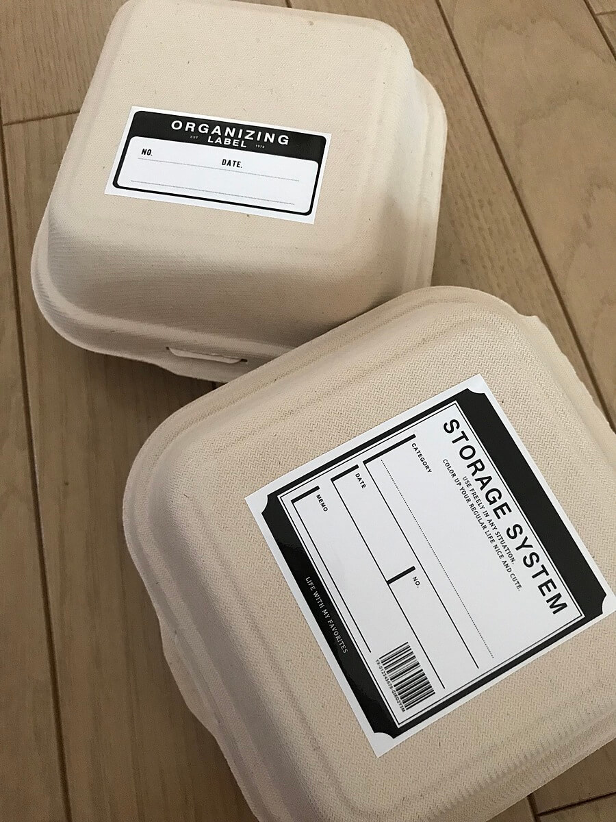 わたしは、無地の使い捨て容器にも、ドカンと貼っちゃいましたよ!