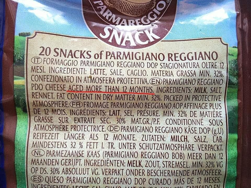 熟成期間は12カ月以上だそうです。ただ、パルミジャーノレッジャーノ独特の味はしっかりとしますので、十分楽しめますよ!