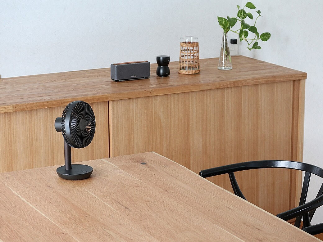 ダイニングで食事をするときや、書類仕事をするときも、大きな扇風機をよっこらせっと移動させるのは億劫ですが、ルーメナーなら簡単に移動することができます。