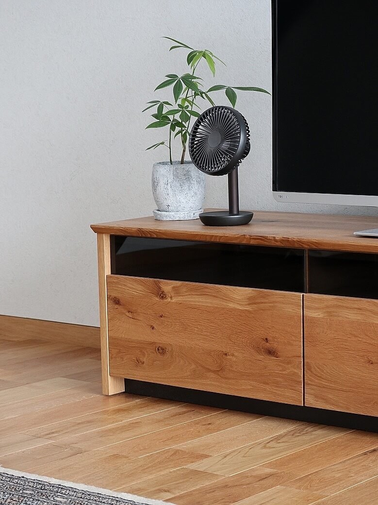 大きな扇風機はリビングで邪魔になってしまうけど、この小ささならテレビボードの上や、サイドテーブルの上にも置いておくことも。