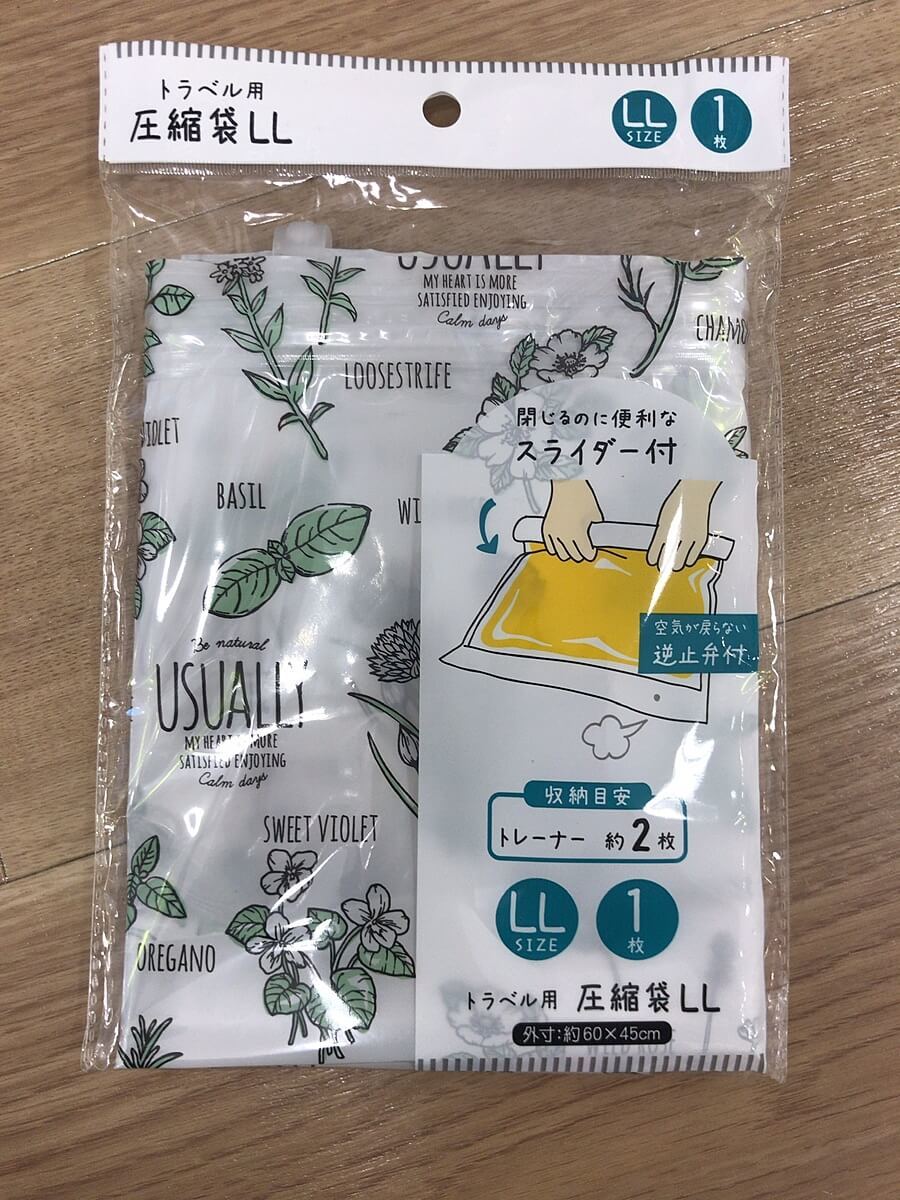 衣類やタオルの持ち運びに「圧縮袋LLサイズ」