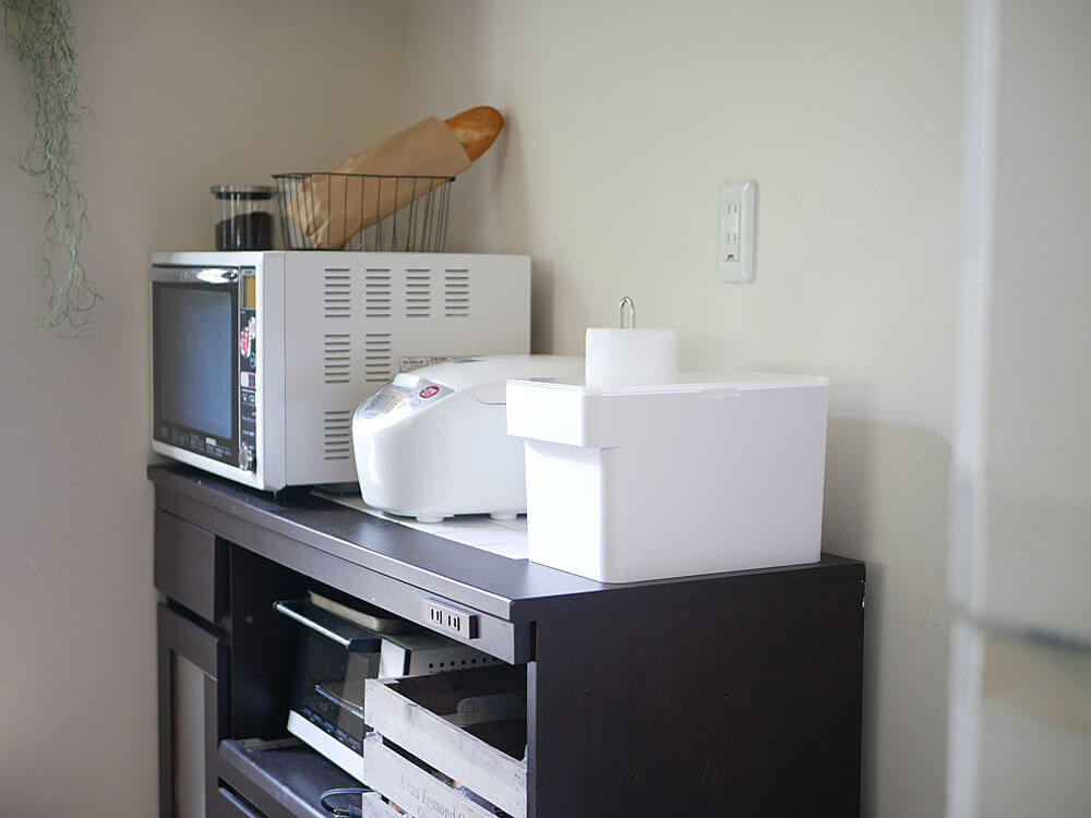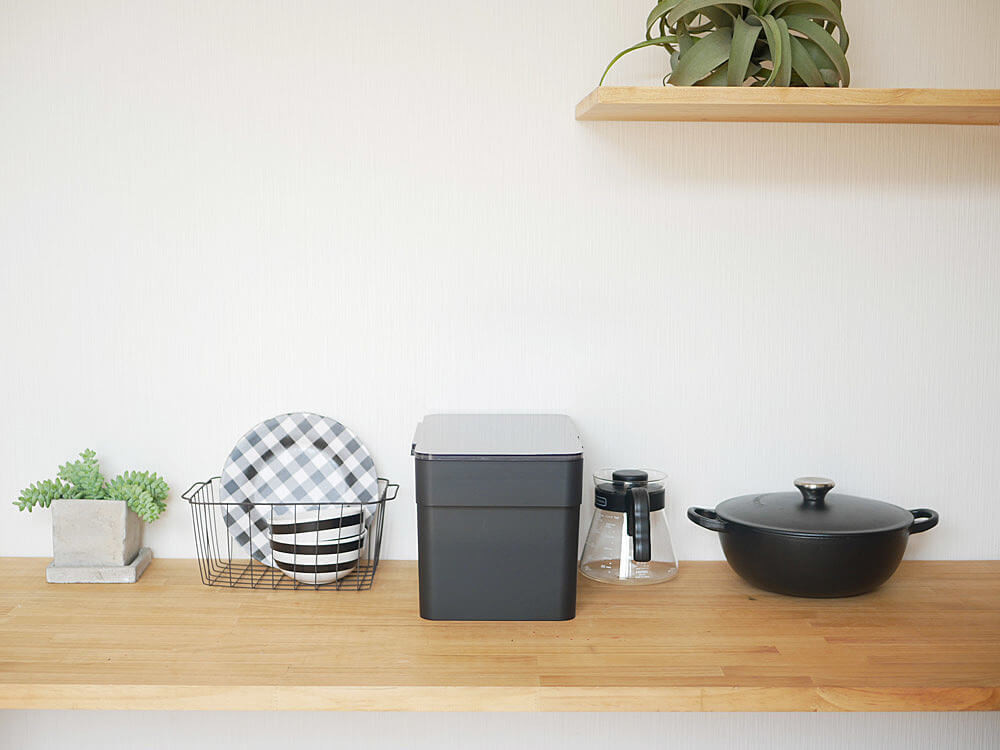 商品名は”シンク下米びつ”ですが、あえてキッチンカウンターに置いても、「米びつ」感ゼロ(笑)!!