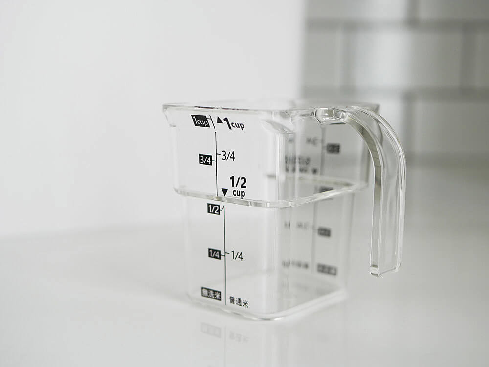 さらに、普通米と無洗米の2種類のメモリ付きなのも魅力なんですよね。 持ち手付きで、ちり取りのようなフチの形が使いやすさ抜群の優秀計量カップです。