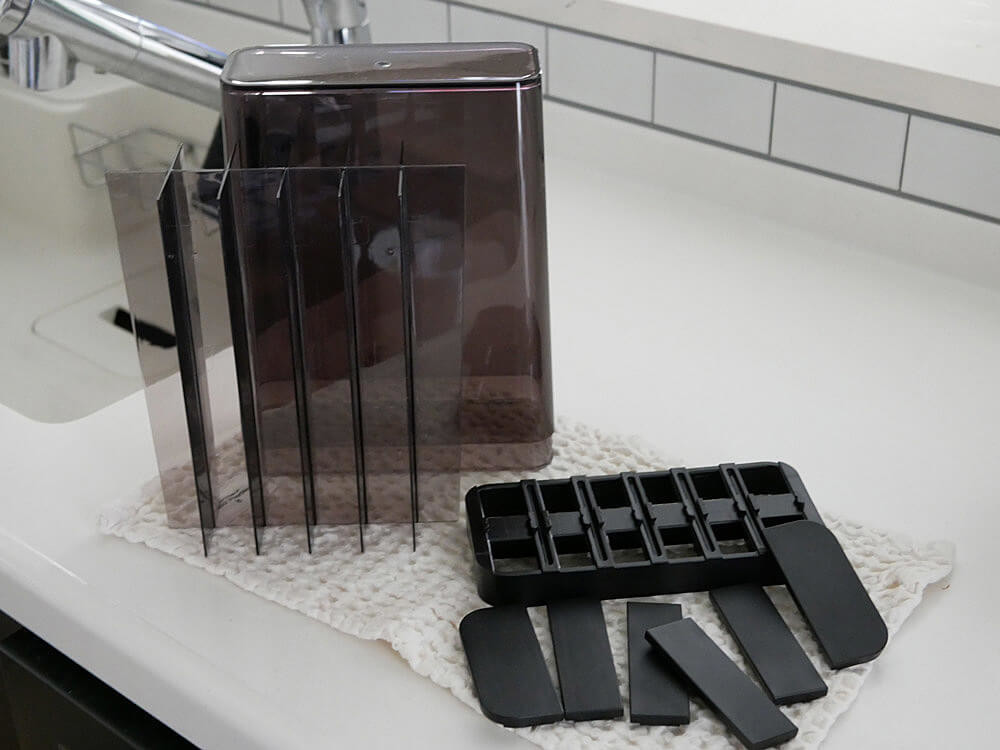 部品は全て分解して洗えるので、いつでも清潔に保てます。 食品ストッカーとしては、衛生面で安心して使えるのがポイントですね。