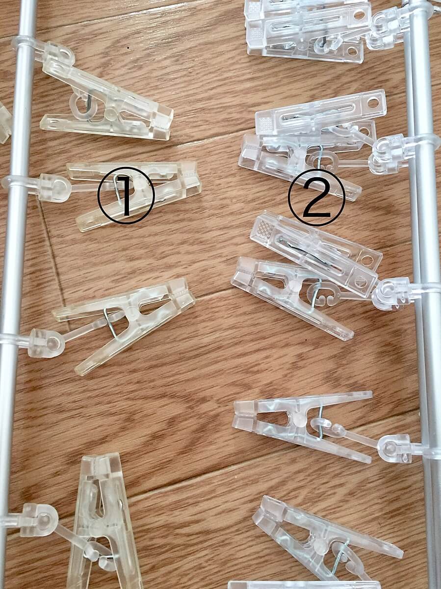 ①:2年間使用したピンチ、②:新品のピンチ