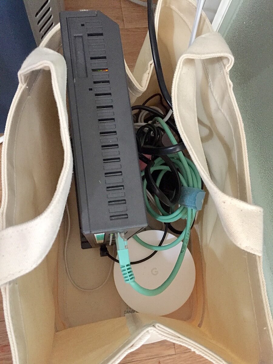 帆布バスケットにルーター類を目隠し収納