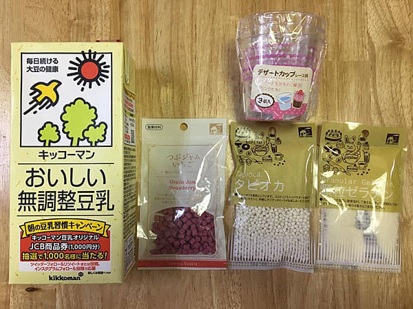 セリアで揃う材料で作れる「タピオカ入り豆乳プリン」の作り方を紹介します。