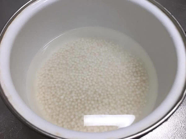 ②タピオカを約5分湯がきます(半透明になり浮いてくるまで)。