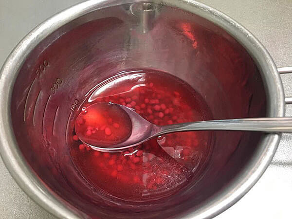 ④あらかじめお湯でふやかしておいたゼラチンを加えて溶かし混ぜます。