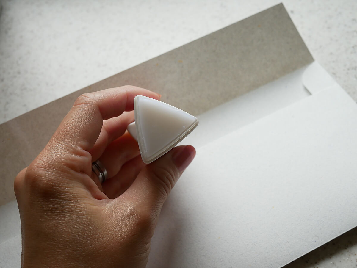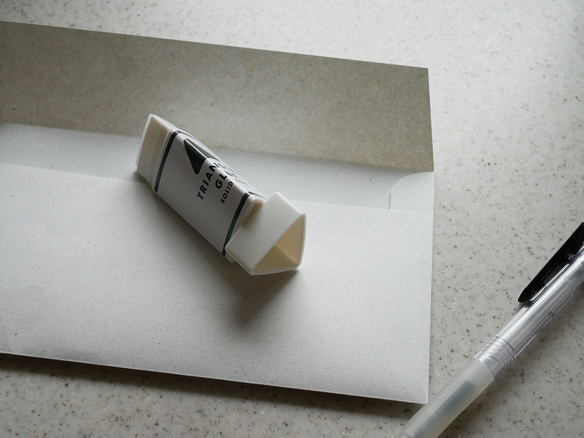 大人になって何かを作るということが少なくなってきて、のりを使うタイミングというと、封筒を閉じる時くらい。 でも、角の部分にきれいにのりをつけづらいという悩みがありました。