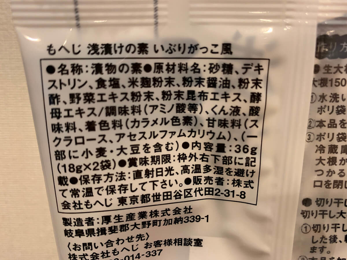 もへじ「浅漬けの素 いぶりがっこ風36g」166円(税込)