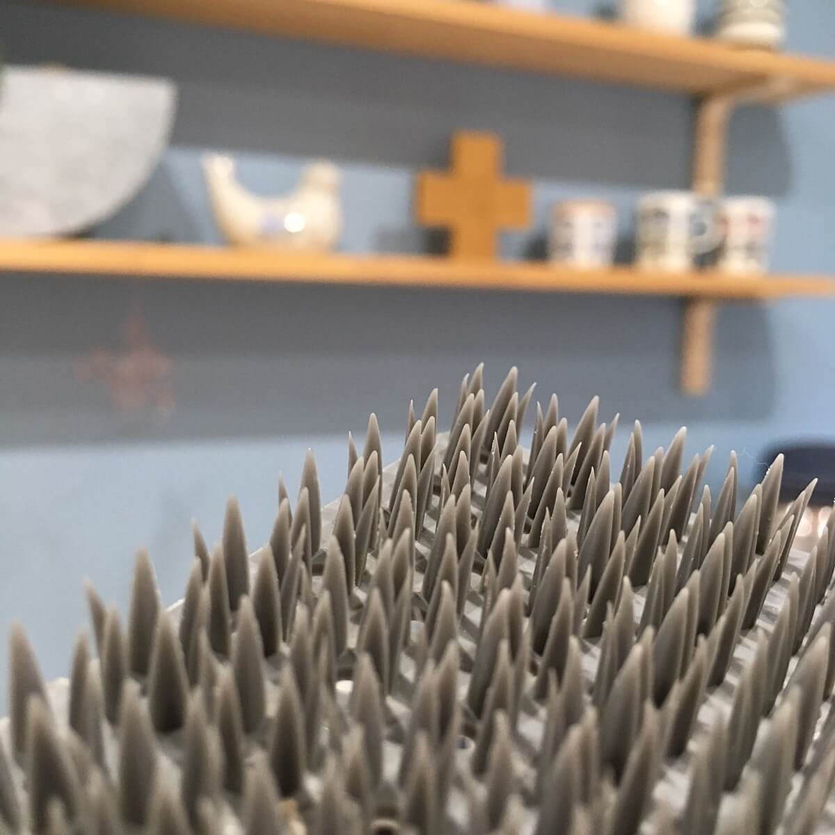 適度な固さのツンツンした突起で、スポンジでは届かないキッチン用品の網目や隙間もキレイに洗えます。