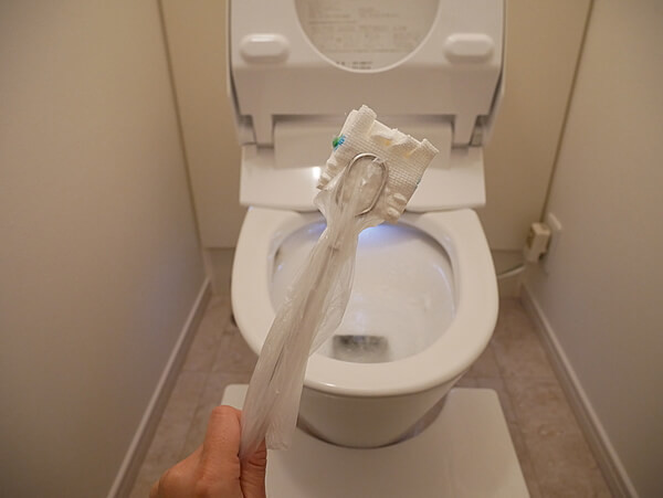 写真のようにキッチンペーパーを使って尿が付きやすいところ、臭いが気になるところを重点的にクエン酸パックをします。パック時間は1時間ほど。