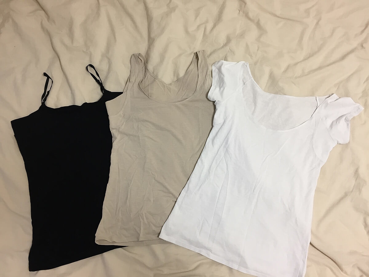 私はタンクトップがおすすめですが、キャミソールもフレンチスリーブTシャツもありますので、自分に合ったタイプを選んでくださいね。