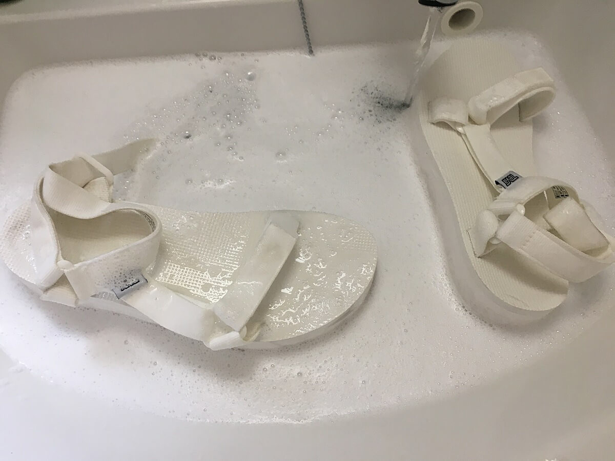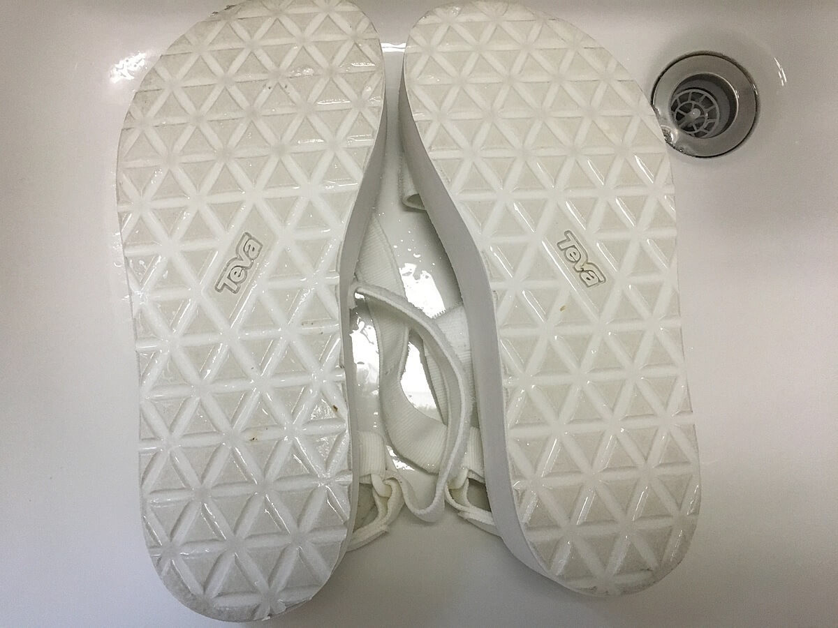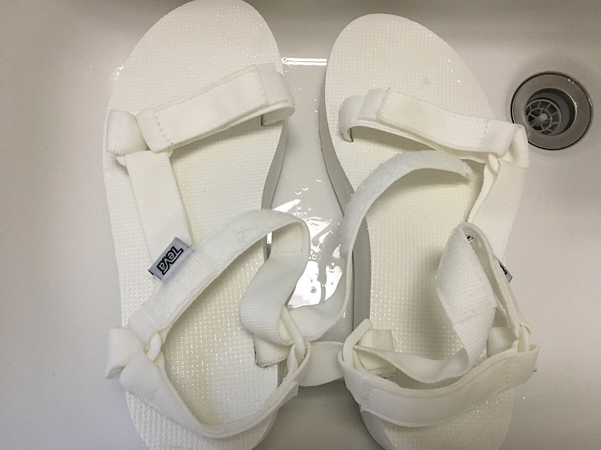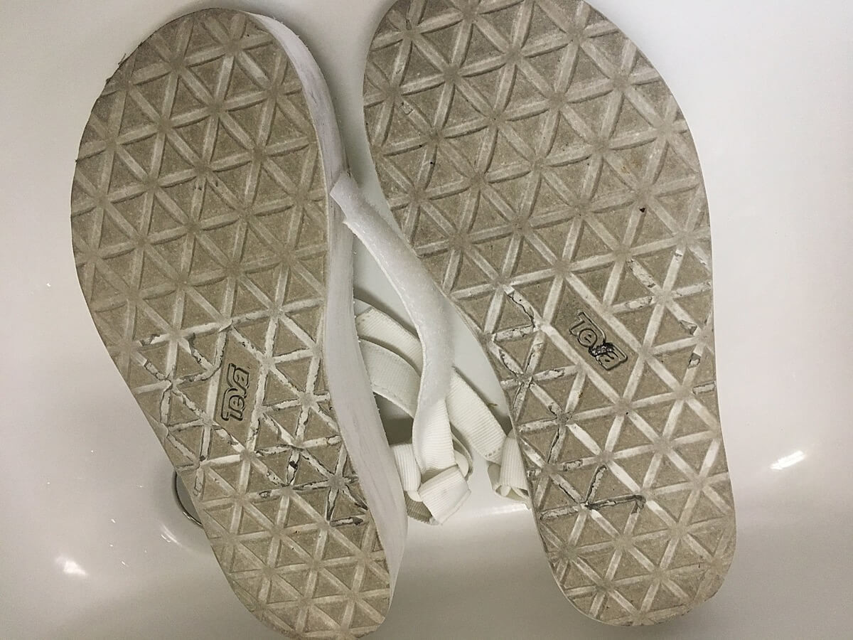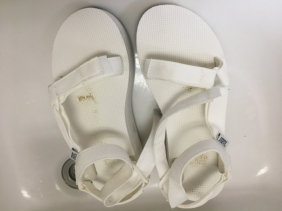 靴底の汚れもここまで落ちるの!?白いサンダルが”驚きの白さ”になって帰ってきたっ