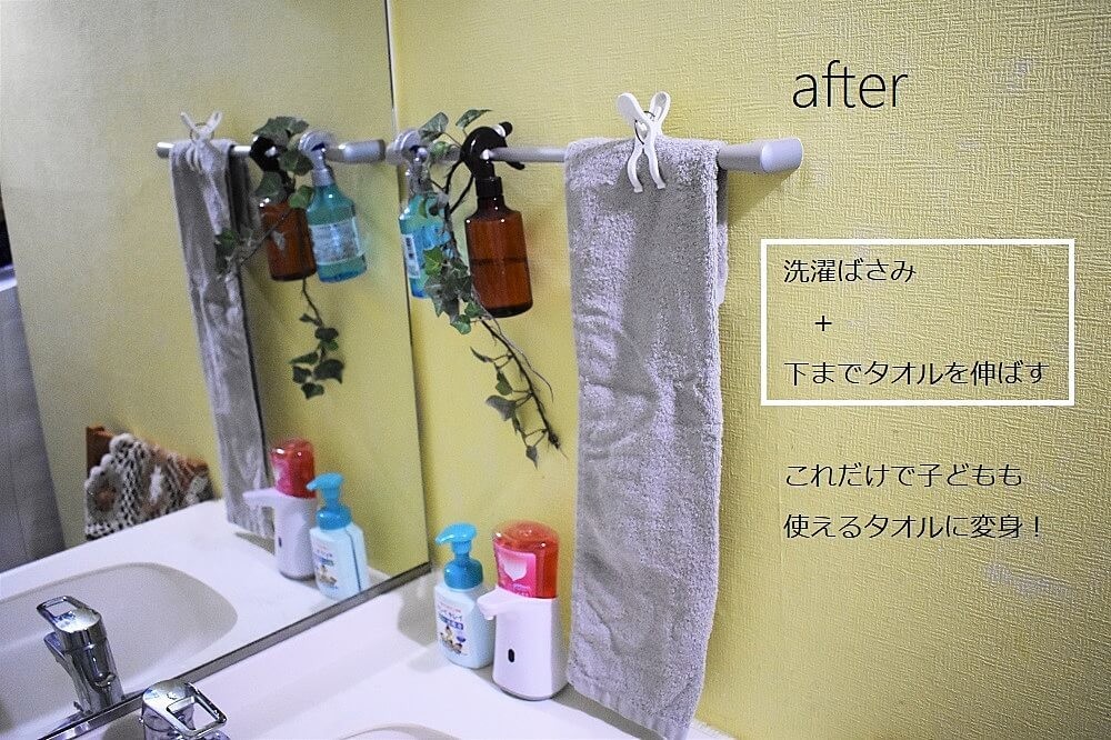 そして思いついたのが「子ども用タオルを置けばいいんだ!」ということ。