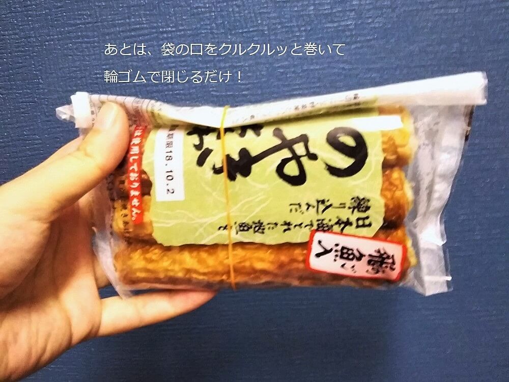 ▲ちくわが邪魔しないので袋が簡単に閉じられます!
