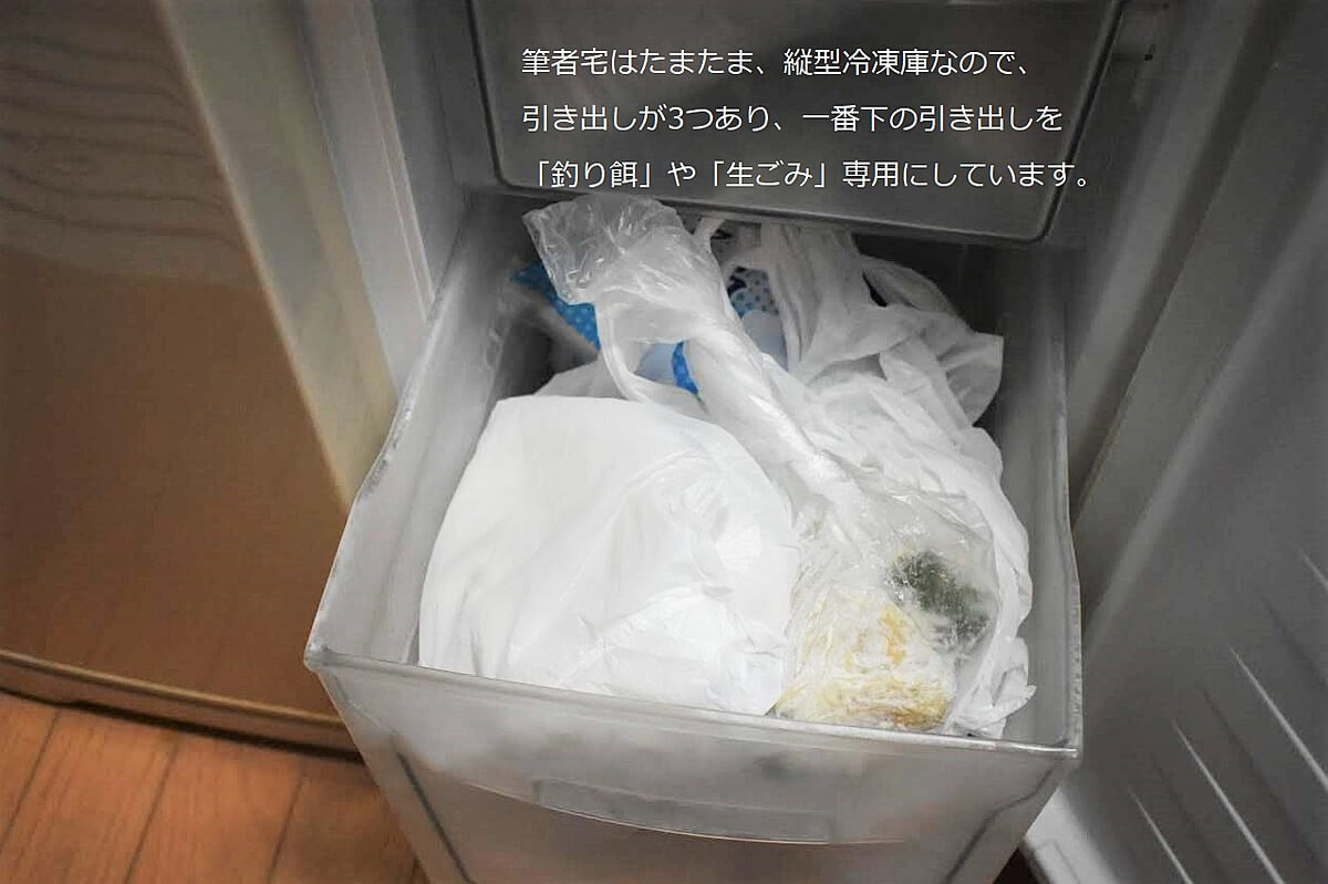 言われるがまま、生ごみは水分を切って、二重にしたビニール袋やレジ袋に入れ、夫の趣味の釣りの餌(イトミミズの冷凍なんて、食品とは別にしたいもの!)が入った冷凍庫の引き出しに入れるように。