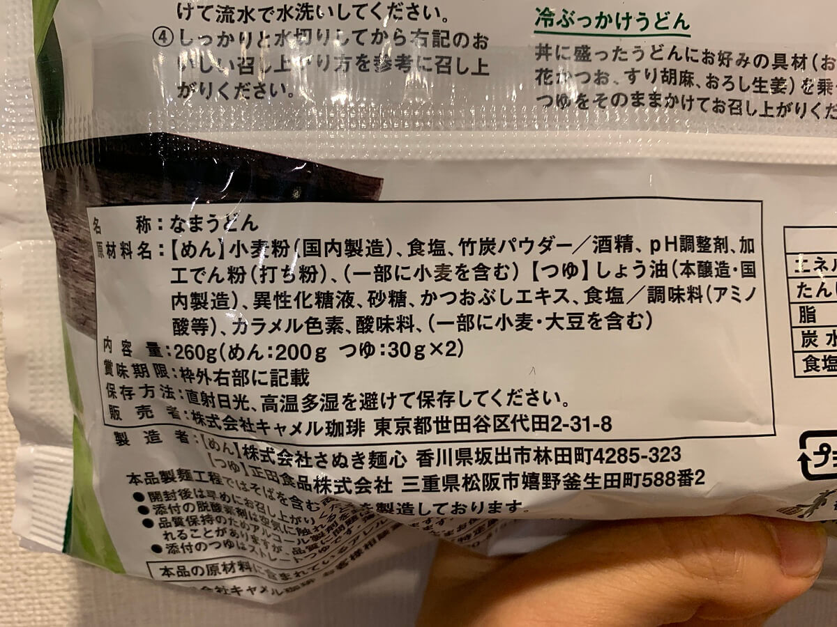 まず手に取ったのは竹炭を練りこんだ讃岐うどん。ぱっと見イカスミパスタのような印象なので、真っ黒でも抵抗なく食べられそうです。