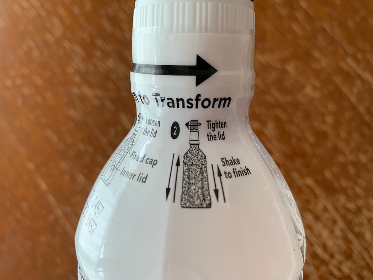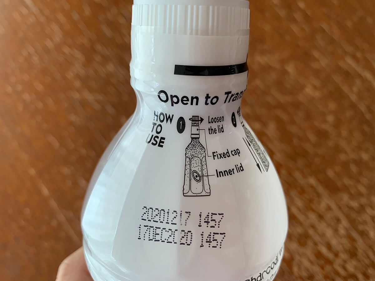 キャップの中に活性炭が入っていて、キャップを回すとそれがボトル内に落ちるという仕組みになっているので、何も知らずに買うとビックリしそうです。