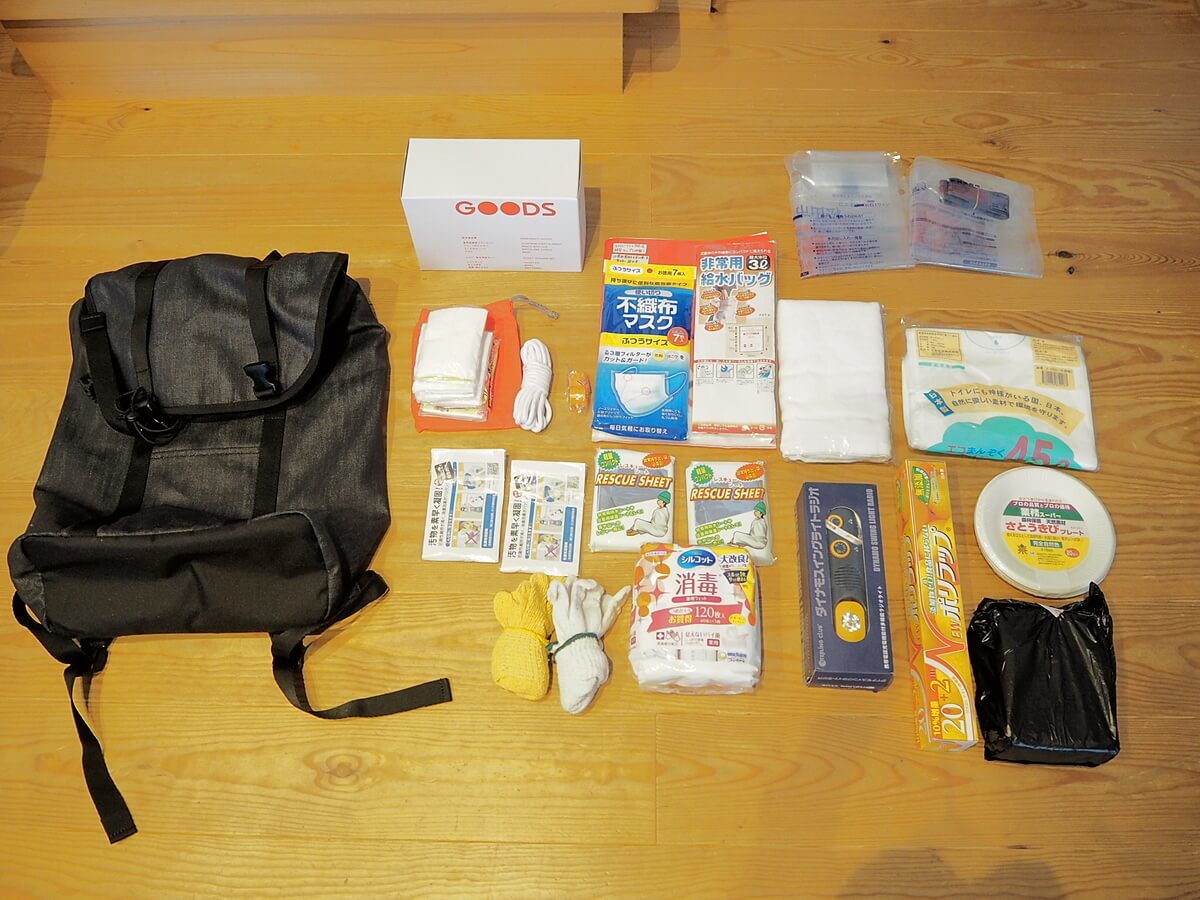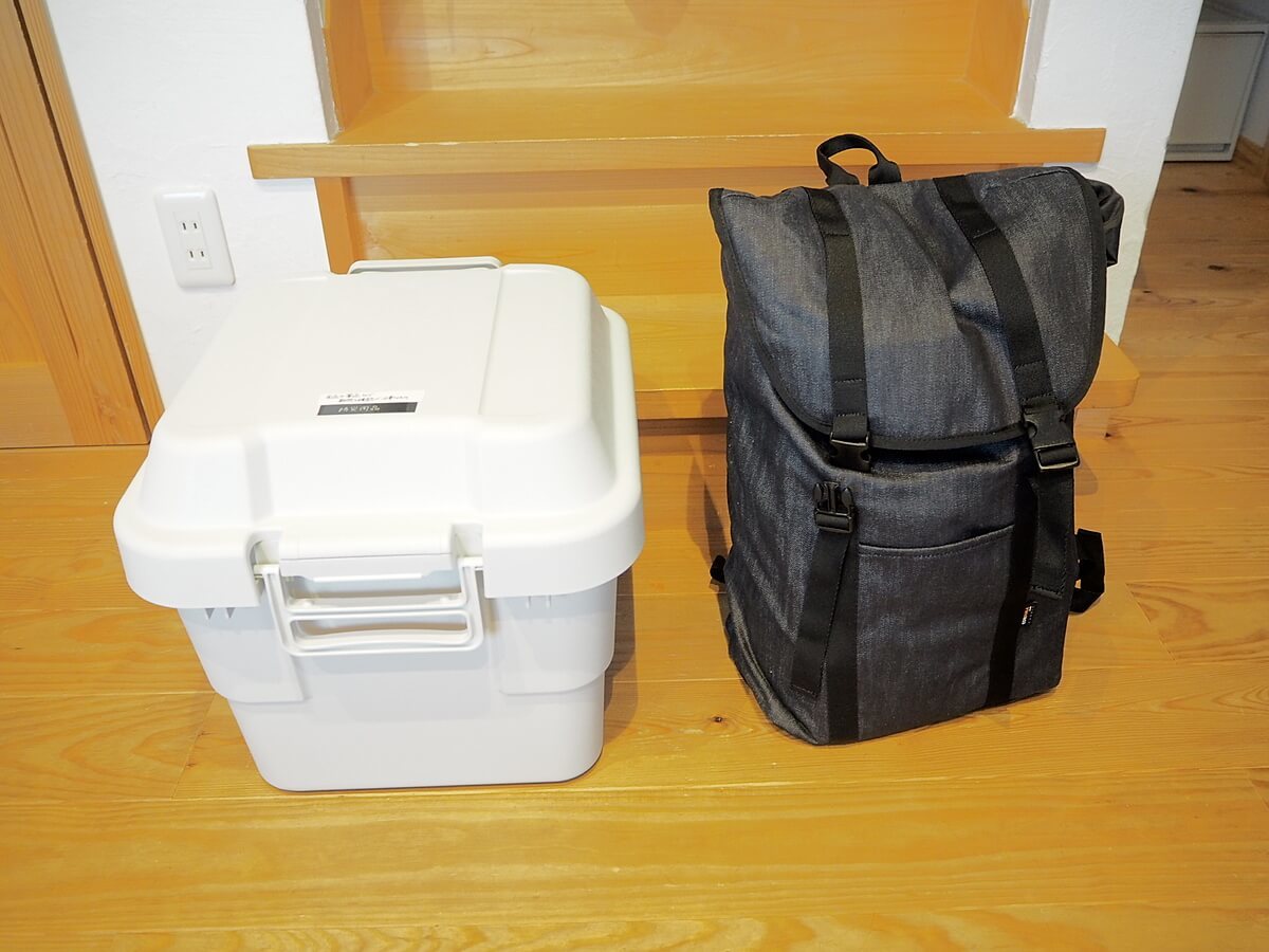 我が家では外箱から出して、「非常食セット(FOODS)」はその他の非常食と一緒に、「防災備品類(GOODS)」と「非常時に読む本(BOOK)」はリュックの中にしまっています。