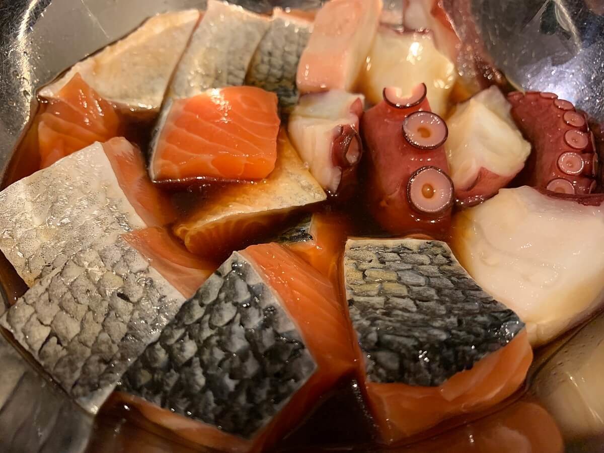 今回はタコ1パックとサーモンの切り身2切れでザンギを作ってみることにしました。