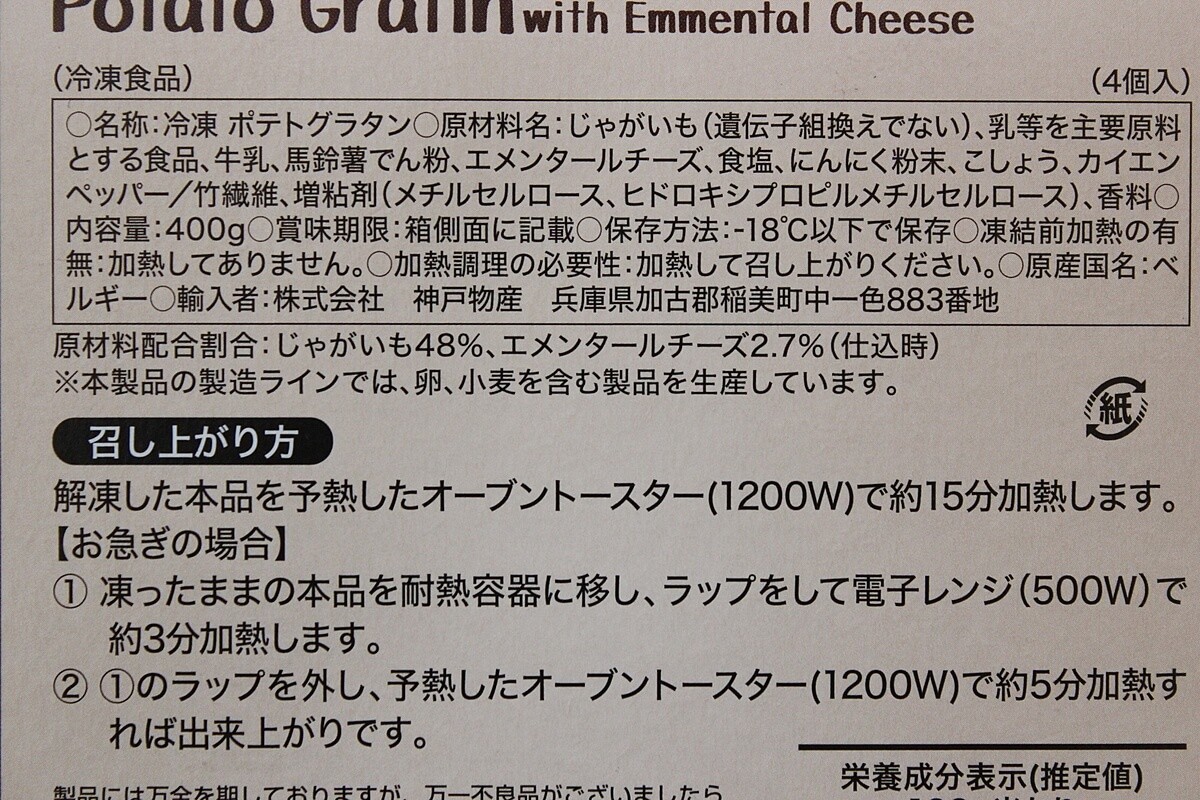 今回買ってみた、ベルギーから来たポテトグラタンは期待通りの味でした!