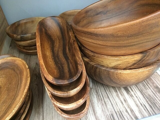 一般的に売られている木製食器の材質は、主に天然木。 アカシアなどの比較的耐久性に優れた素材を使うことが多いです。