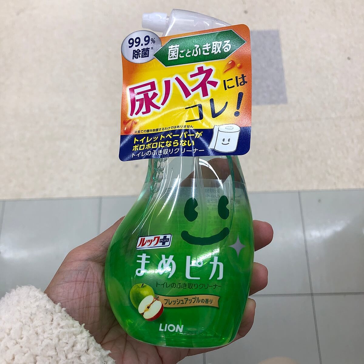 トイレットペーパーを丸めて取り、まめピカを数回プッシュ。