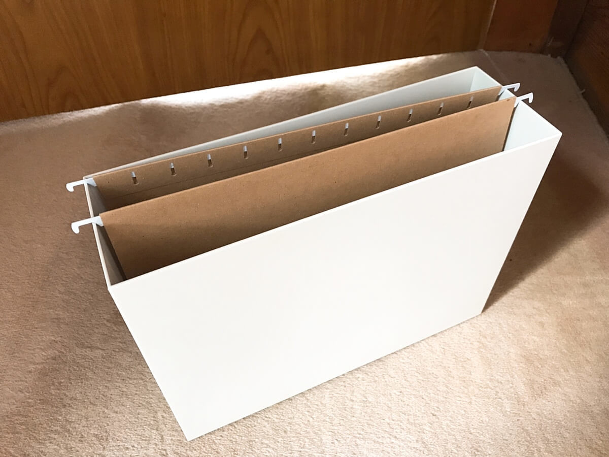 そこで、無印良品のハンギングホルダーとファイルボックスを利用した整理方法に切り替えてみました。