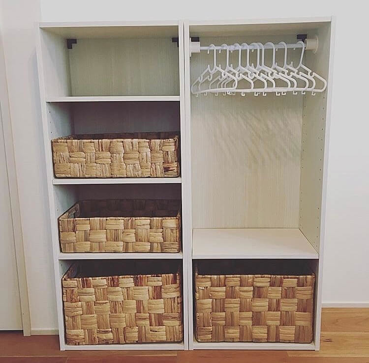 @quick__gramさんは、カインズホームで販売されている商品を活用して、使い勝手の良いベビークローゼットを作成されています。