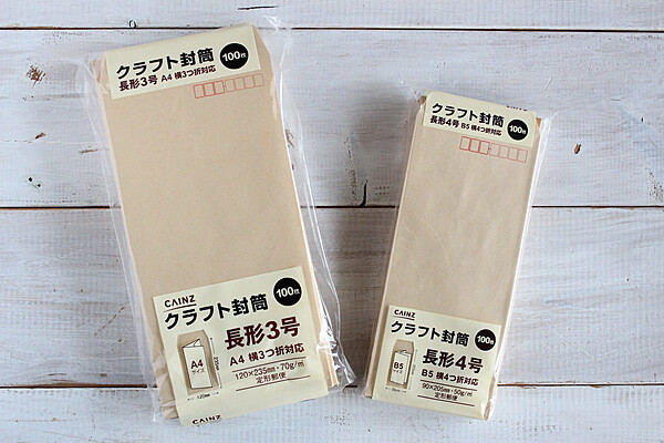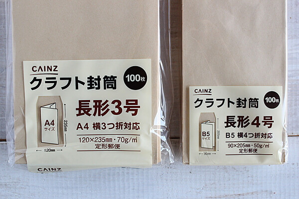 こちらの2つの封筒、我が家では何かと使うサイズなので常備してあります。