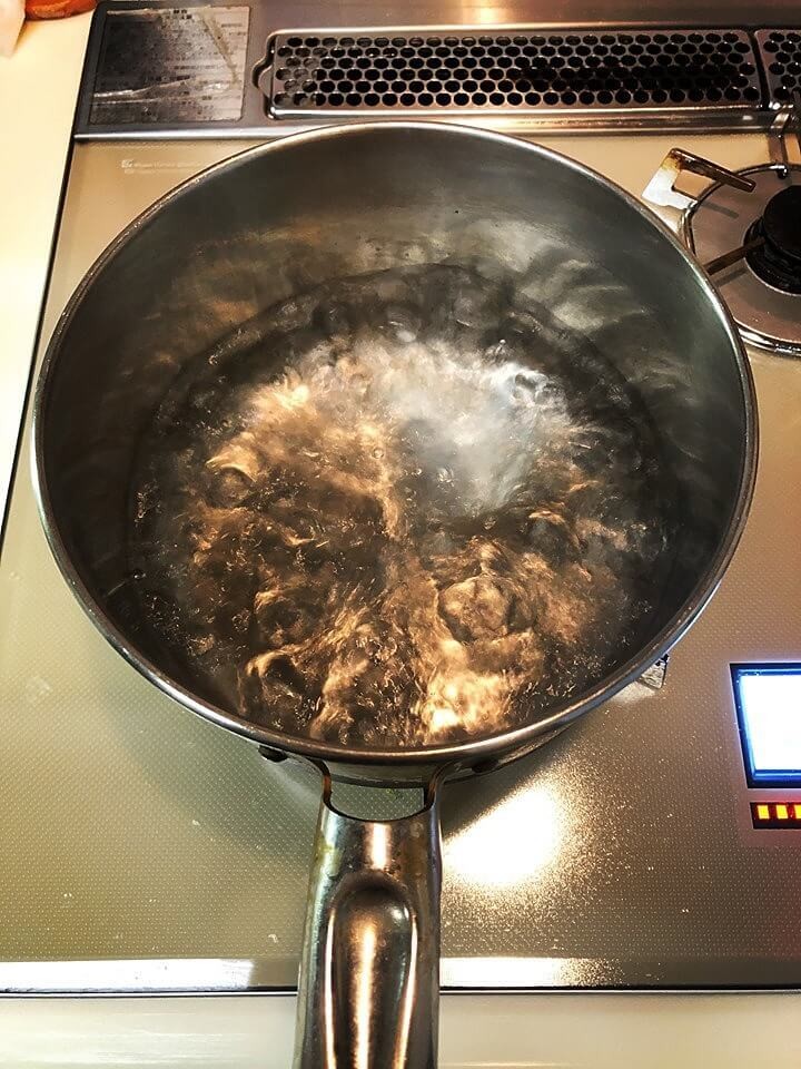 というわけで、表示通り1リットルのお湯で湯がいてみました。