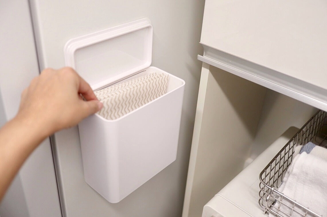 収納としても使えるので、キッチンでダスターを入れたり、洗濯機にくっつけて洗濯ネットを入れたり、タブレット洗剤を入れるのもおすすめ!