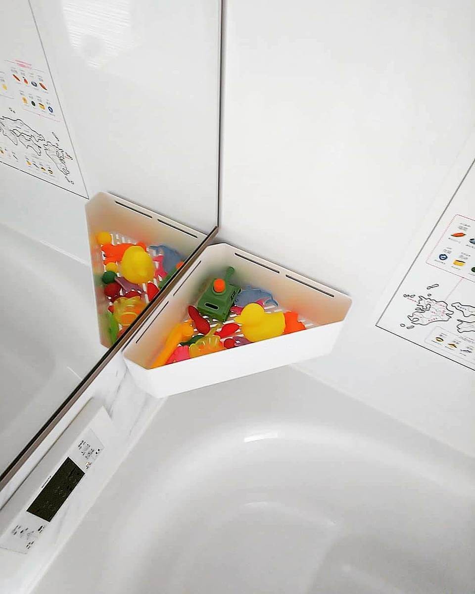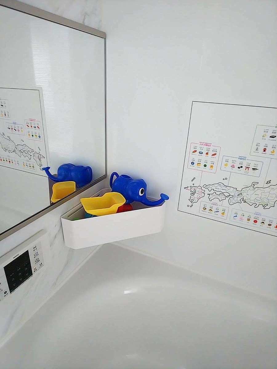 子どものおもちゃといえばカラフルで形も大小様々ですが、このラックは色も形もとてもシンプルなのでお風呂場の見た目がごちゃごちゃするのを抑えてくれます。