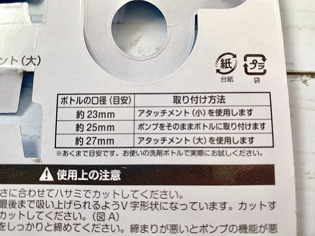 チャーミーマジカ詰替え用 特大サイズ(950mL)には、アタッチメント小をポンプに取り付けて使用します。