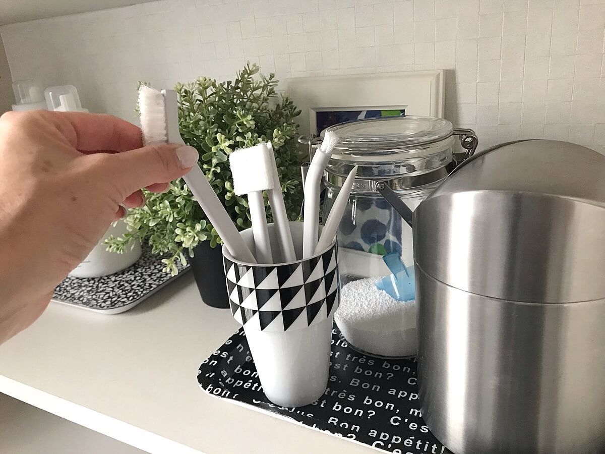 5.小さな掃除ブラシはおしゃれなマグカップに立てて!