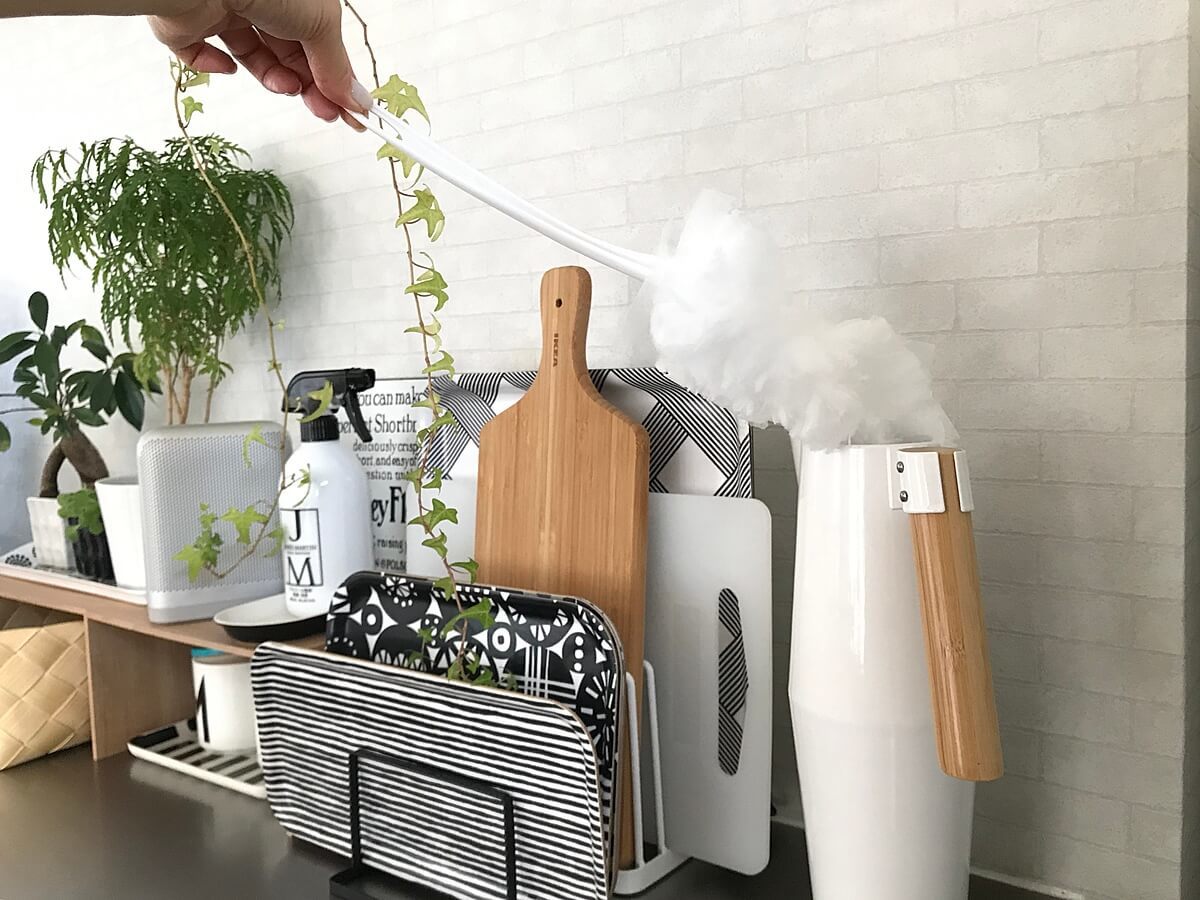 ここにあることで、家電や家具の汚れに気づいた時にサッと手を伸ばして、ホコリを拭き取ることができています。