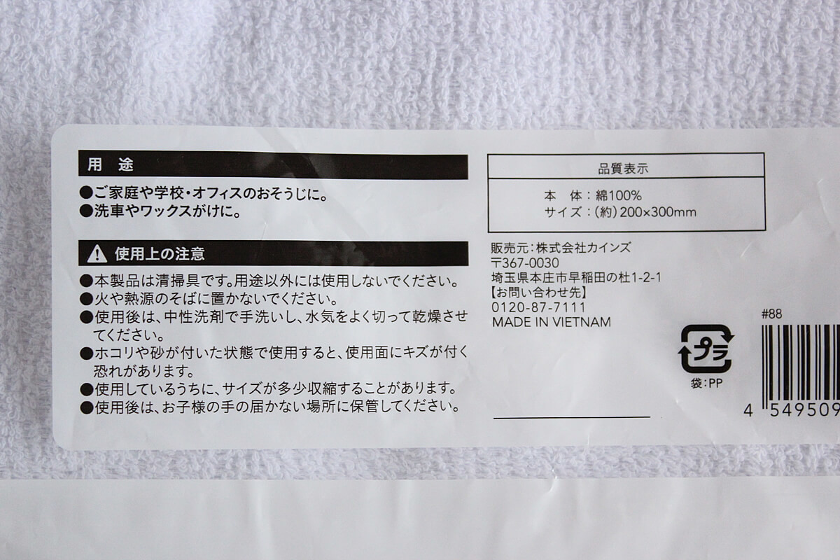 100円ショップではごく普通のタイプの雑巾は3枚で108円だと思いますが、