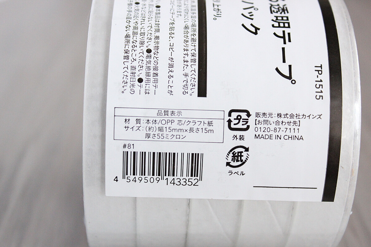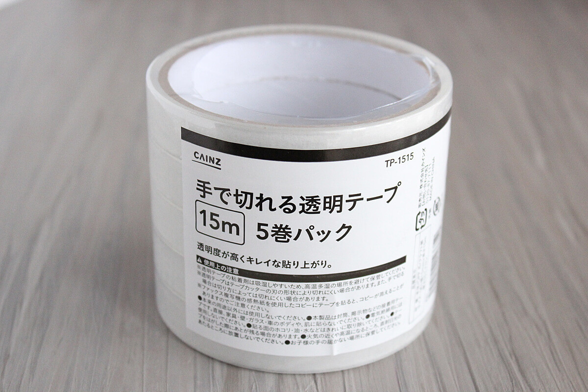 同じ幅で手で切れる商品はあまり見かけないので比較できないのですが、カインズの手で切れる透明テープは税込98円という低価格!