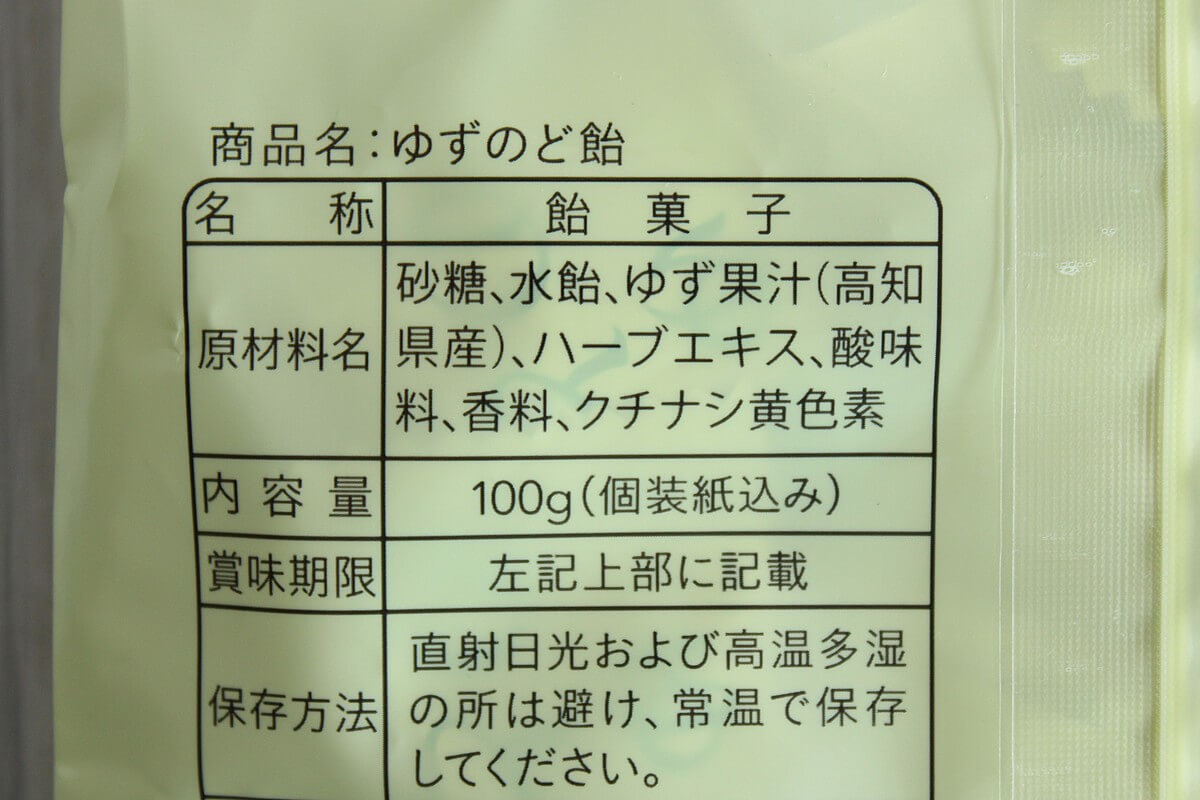 ゆずのど飴は、高知県産のゆず果汁を使用し、21種類のハーブが配合されています。