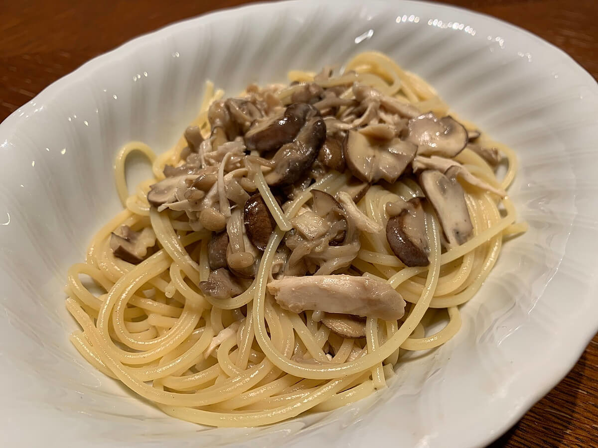 きのこと蒸し鶏のクリームパスタ