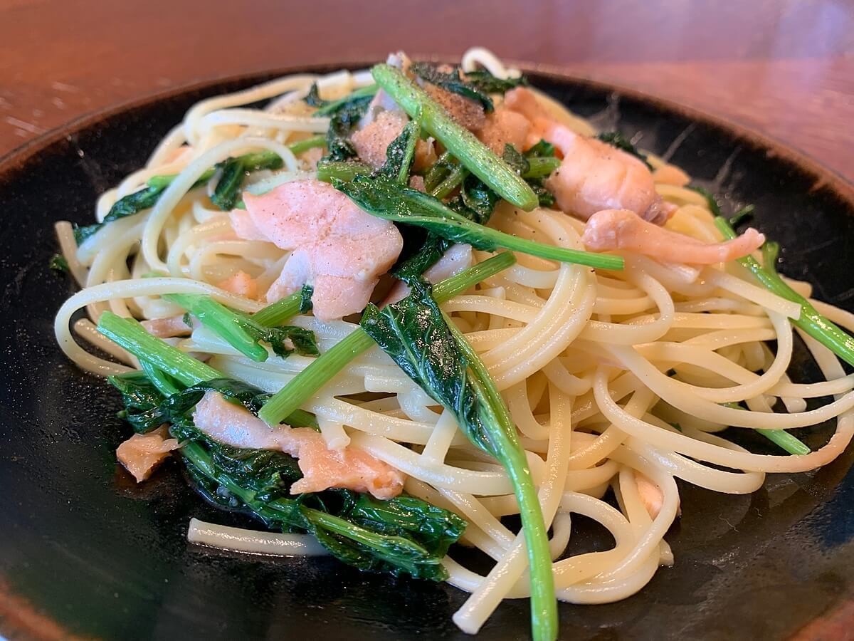 サーモンと青菜のクリームパスタ