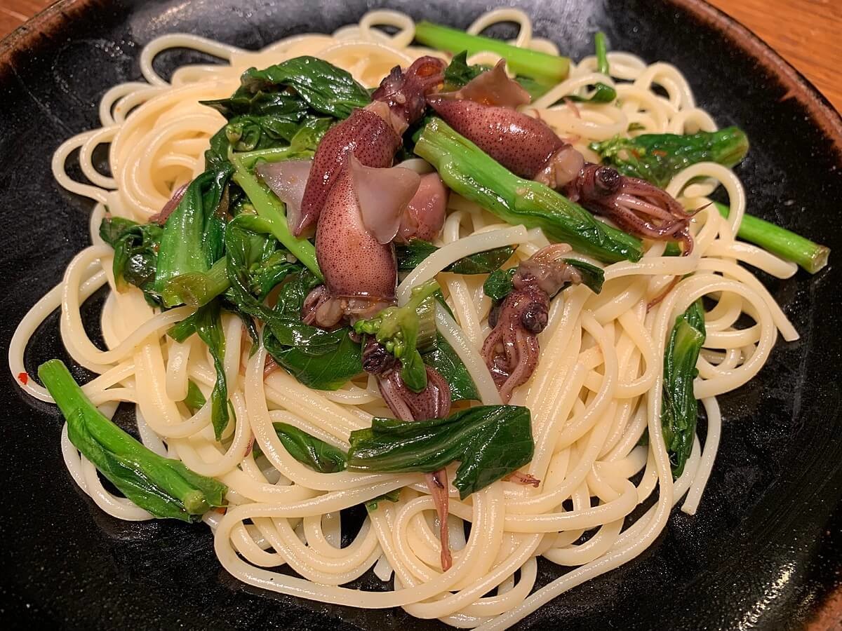 ホタルイカと菜の花のペペロンチーノ
